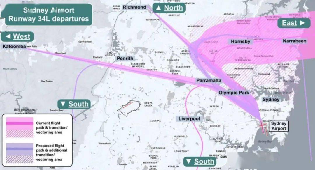 为了将西悉尼机场的新航线整合到悉尼现有的空域(全澳最繁忙、最复杂的空域)中,需要对全市其他机场的一些航线进行更改。