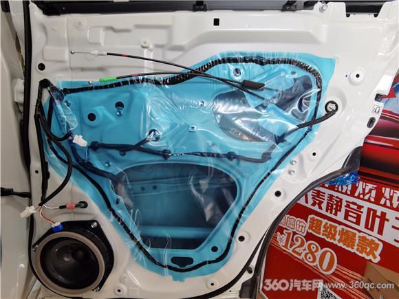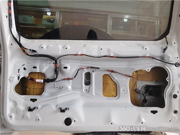 改装技师用大白鲨金鲨JS300减震胶,将车门的表里两层钣金板都做了隔音止震处理,加厚门板的厚度,一起将车门的孔洞进行密封,将车门构成一个密封的箱体,不只根绝了风噪的传入,还避免了喇叭与车门板的共振,音响器材的音质也得到了提高。